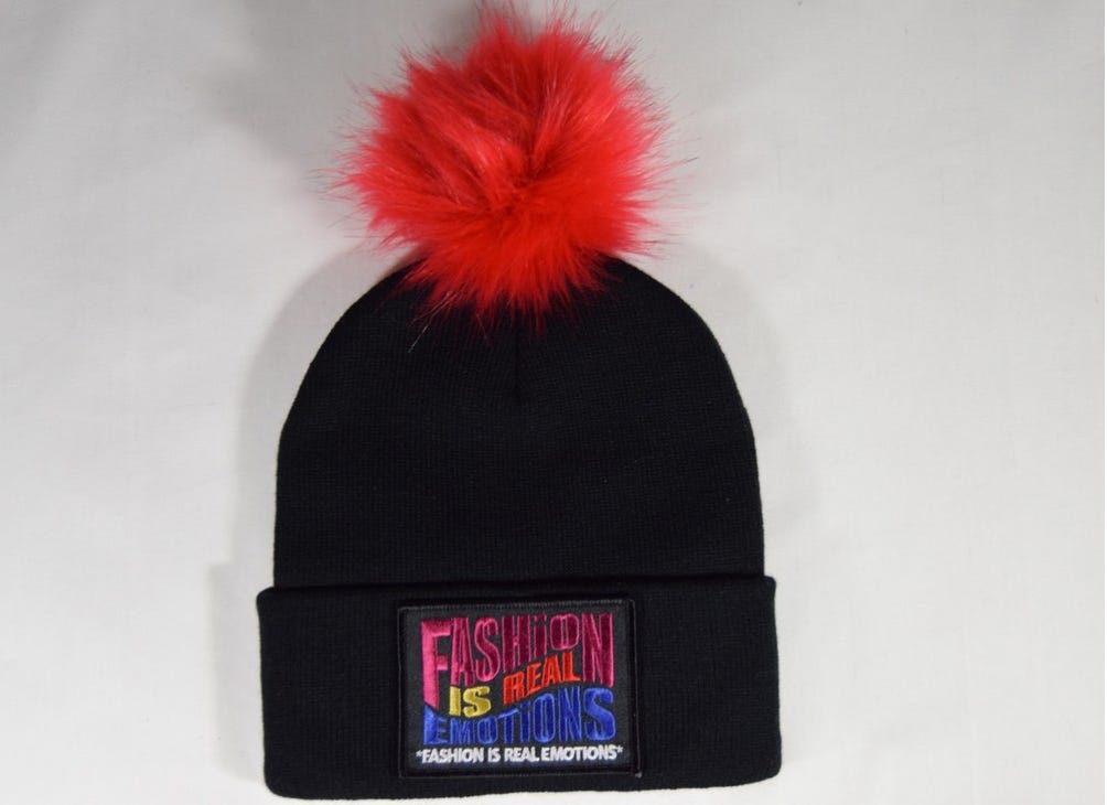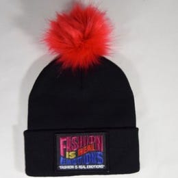 BLACK "ENERGY" NYC COIN / RED BEANIE-POM