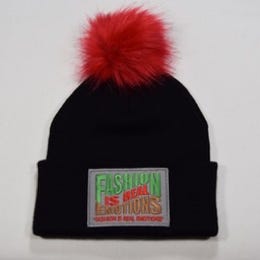 BLACK "EPIC" BANNER BEANIE-POM/RED