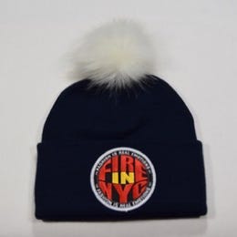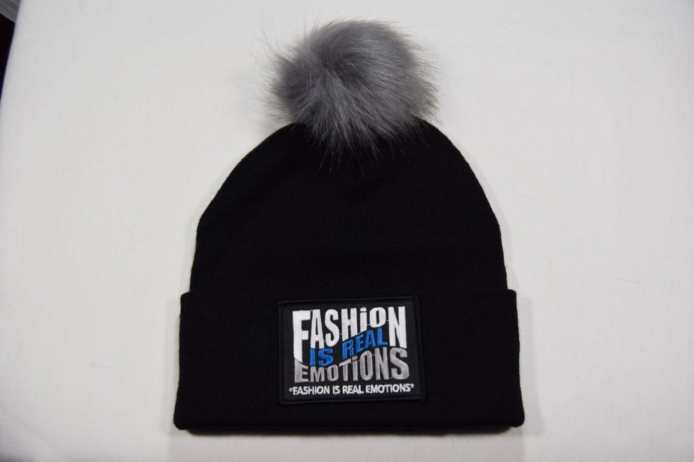 BLACK "PLATINUM" BANNER BLUE BEANIE-POM