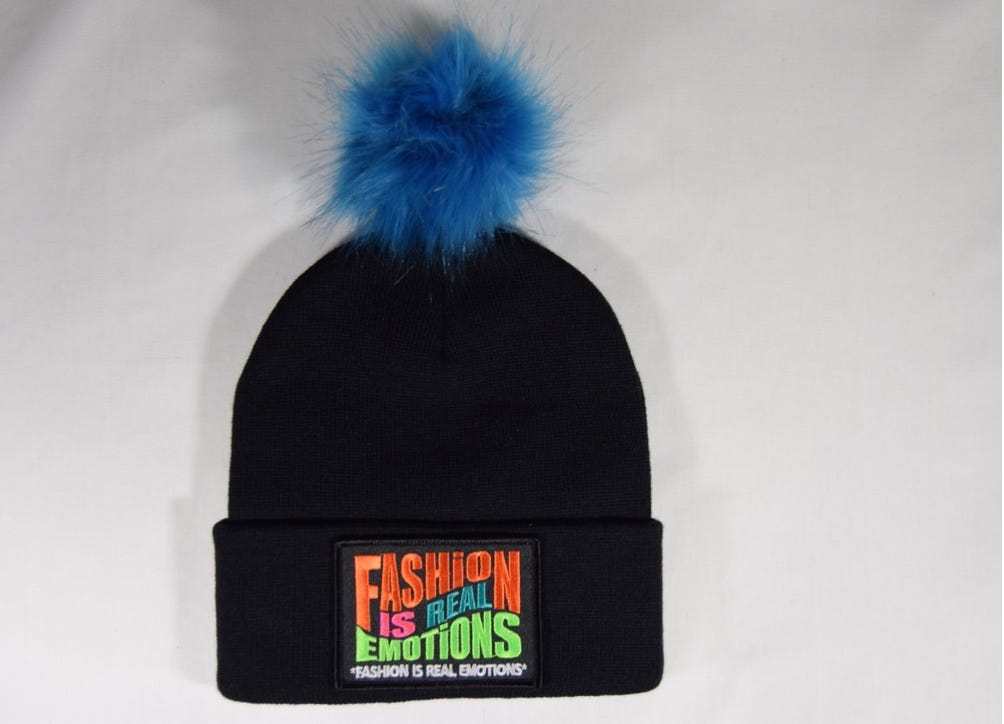 BLACK "VIVID" BANNER BEANIE-POM/BLUE