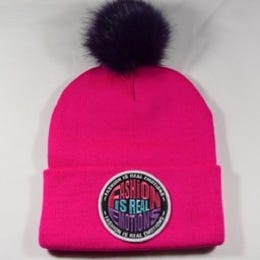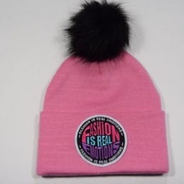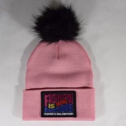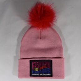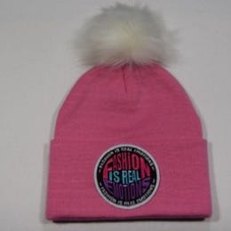 POWDER PINK AWARENESS" COIN WHITE BEANIE-POM