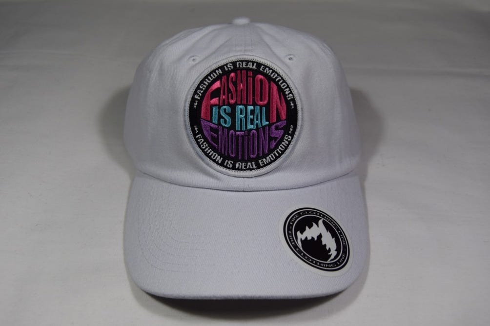 WHITE "EMOTION" COIN STRAPBACK